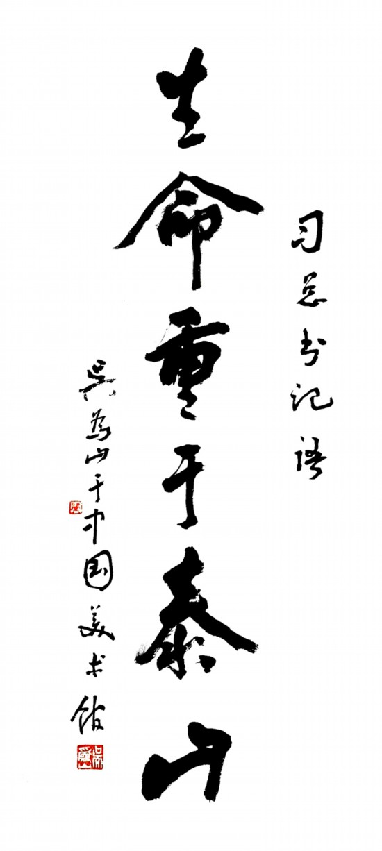 《生命重于泰山》吳為山 書法