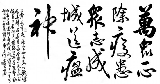 《萬眾一心除疫患 眾志成城送瘟神》何家英 書法