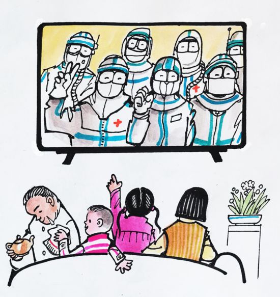 《——爸媽、叔叔阿姨在武漢保平安吶!》 徐進(jìn) 漫畫(huà)