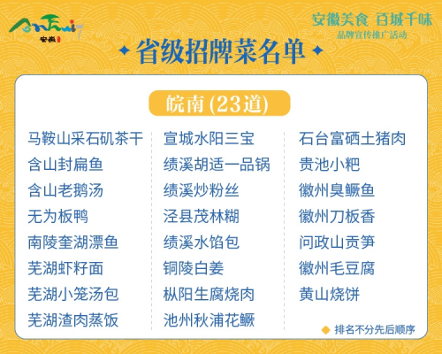 網(wǎng)友可通過登錄安徽省文化和旅游廳官方網(wǎng)站或“游安徽APP”查看“安徽美食·百城千味”網(wǎng)絡(luò)專題,了解安徽招牌菜各級(jí)菜單及推薦品嘗點(diǎn)的詳細(xì)信息。此次推薦的安徽招牌菜,囊括了具有地方印記的特色小吃和傳承多年的安徽名菜,快來看看你最喜歡哪一道!本次活動(dòng)由安徽省飯店業(yè)協(xié)會(huì)提供技術(shù)支持。