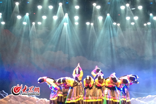 10月1日晚7:30,“十藝節(jié)”祝賀演出——大型民族歌舞劇《碧海云天·金銀灘》在濟南歷山劇院首演。青海海北州民族歌舞團的演員們用激情四射的歌舞表演,為現(xiàn)場觀眾奉上了一場視聽盛宴。