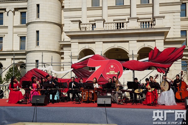 央廣網(wǎng)北京10月5日消息(記者 方婧)《龍騰虎躍》《百鳥朝鳳》《彩云追月》《我的祖國》……一首首膾炙人口的經(jīng)典曲目10月5日響徹北京園博園歐洲園。來自中央民族樂團(tuán)、中國樂府民族樂團(tuán)等國家級院團(tuán)的演員為觀眾帶來了一場高水準(zhǔn)的文藝演出。