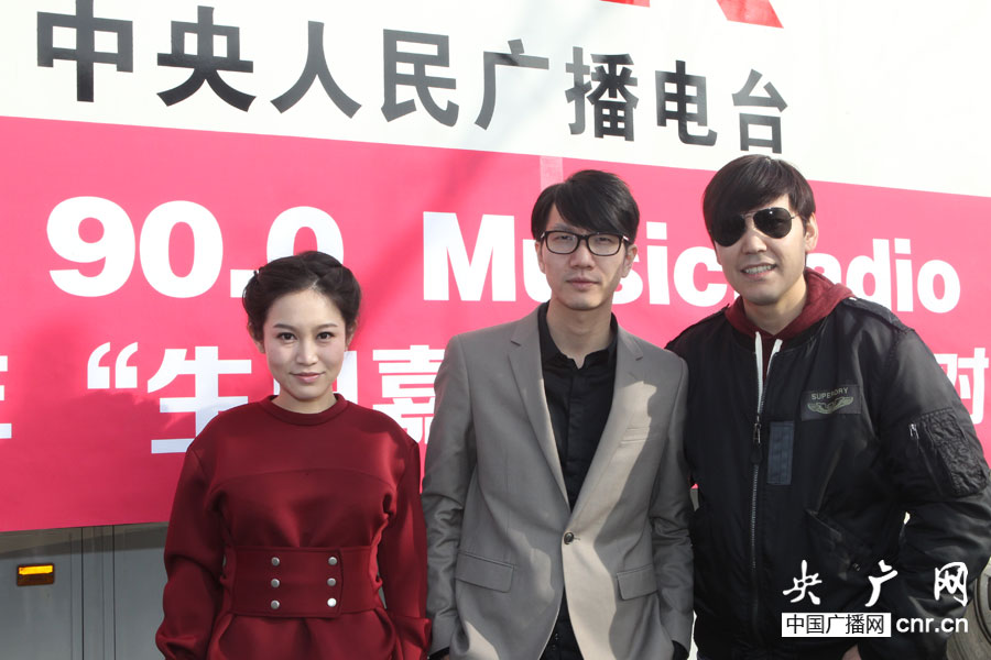 塔斯肯、侯磊、萱萱到達(dá)現(xiàn)場,直播車外合影(央廣網(wǎng)記者杜虎_攝)