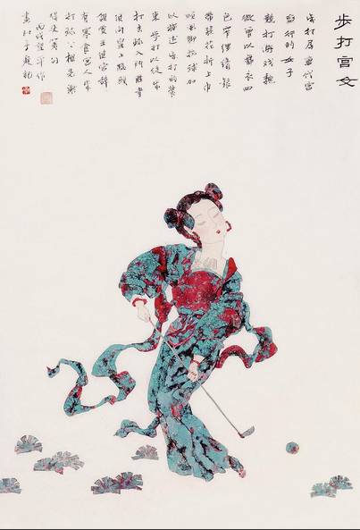 唐代另一位詩人——魚玄機(jī),也有一首名為《詠球作》的詞,詞的大意是:步打球用硬木做成,球杖的杖頭彎曲,硬木球被杖擊之后,像流星一樣飛竄。魚玄機(jī)和王建的這兩首詞,一個(gè)寫男子步打,一個(gè)寫女子步打,足可以反映出步打球在唐代的盛行程度。