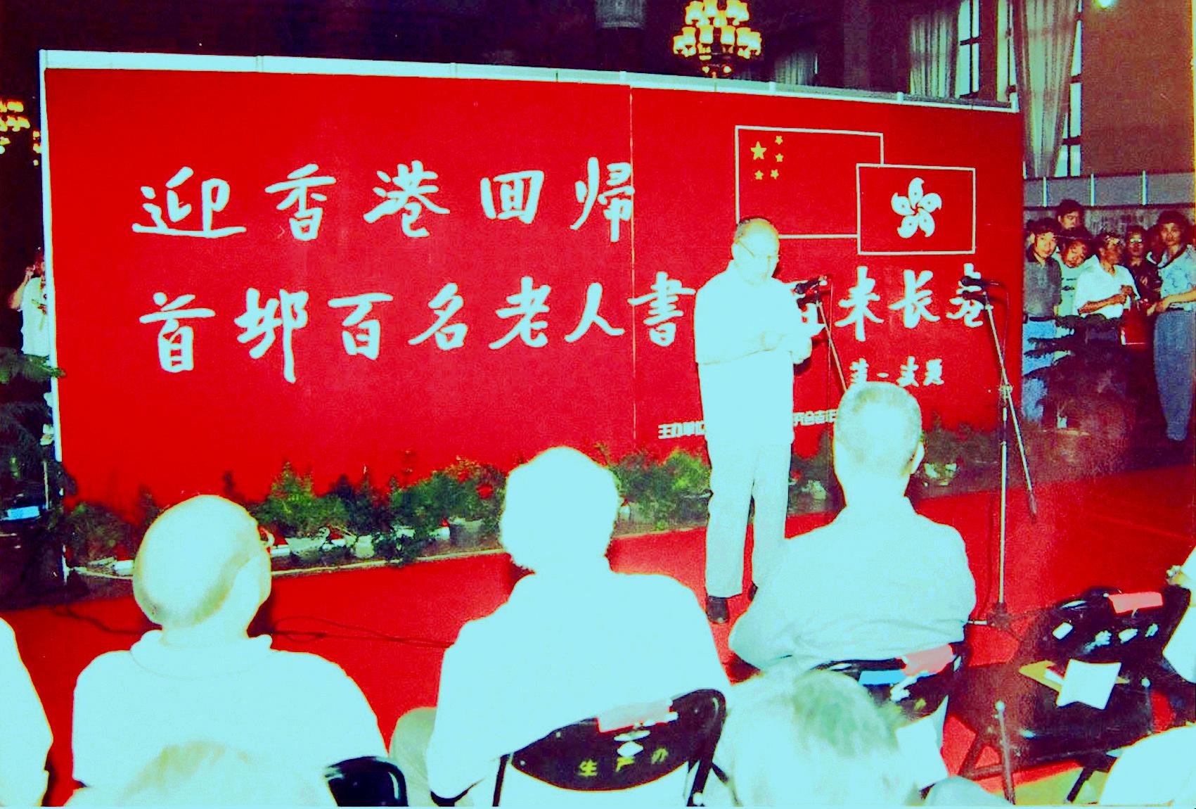 全國(guó)政協(xié)原副主席馬文瑞為“迎香港回歸-首都百名老人書(shū)畫(huà)百米長(zhǎng)卷展”致詞