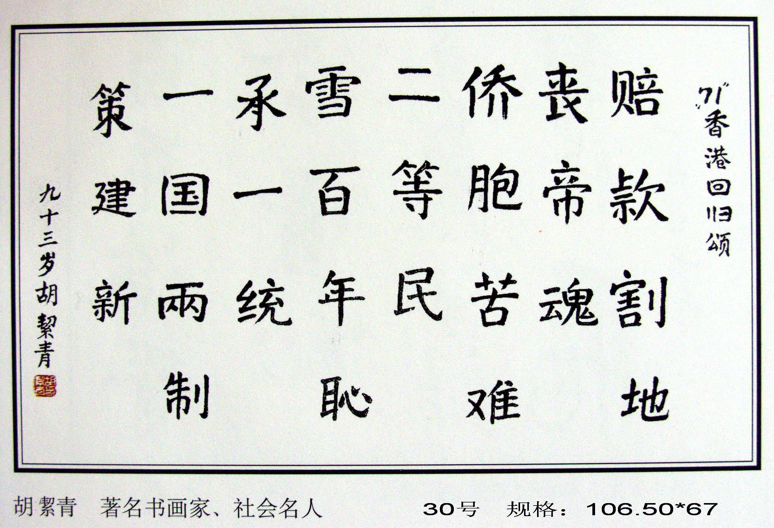 為了留住這一歷史性時(shí)刻,也為了見(jiàn)證香港這百年滄桑的歷史,原國(guó)務(wù)院老干部局、中國(guó)世界民族文化交流促進(jìn)會(huì)藝術(shù)委員會(huì)、中國(guó)政策科學(xué)研究會(huì)老年政策委員會(huì)、北京大運(yùn)河翰林文化開(kāi)發(fā)中心共同邀請(qǐng)四百多位老領(lǐng)導(dǎo)、老將軍、老書(shū)畫(huà)藝術(shù)家、社會(huì)知名人士及優(yōu)秀中青年畫(huà)家,揮毫潑墨,創(chuàng)作了《迎香港回歸首都百名老人書(shū)畫(huà)百米長(zhǎng)卷》,征集了四百多幅精美作品。同時(shí),精選不同藝術(shù)特色和風(fēng)格的作品,裝裱成卷,以珍藏這筆巨大的精神文化財(cái)富。