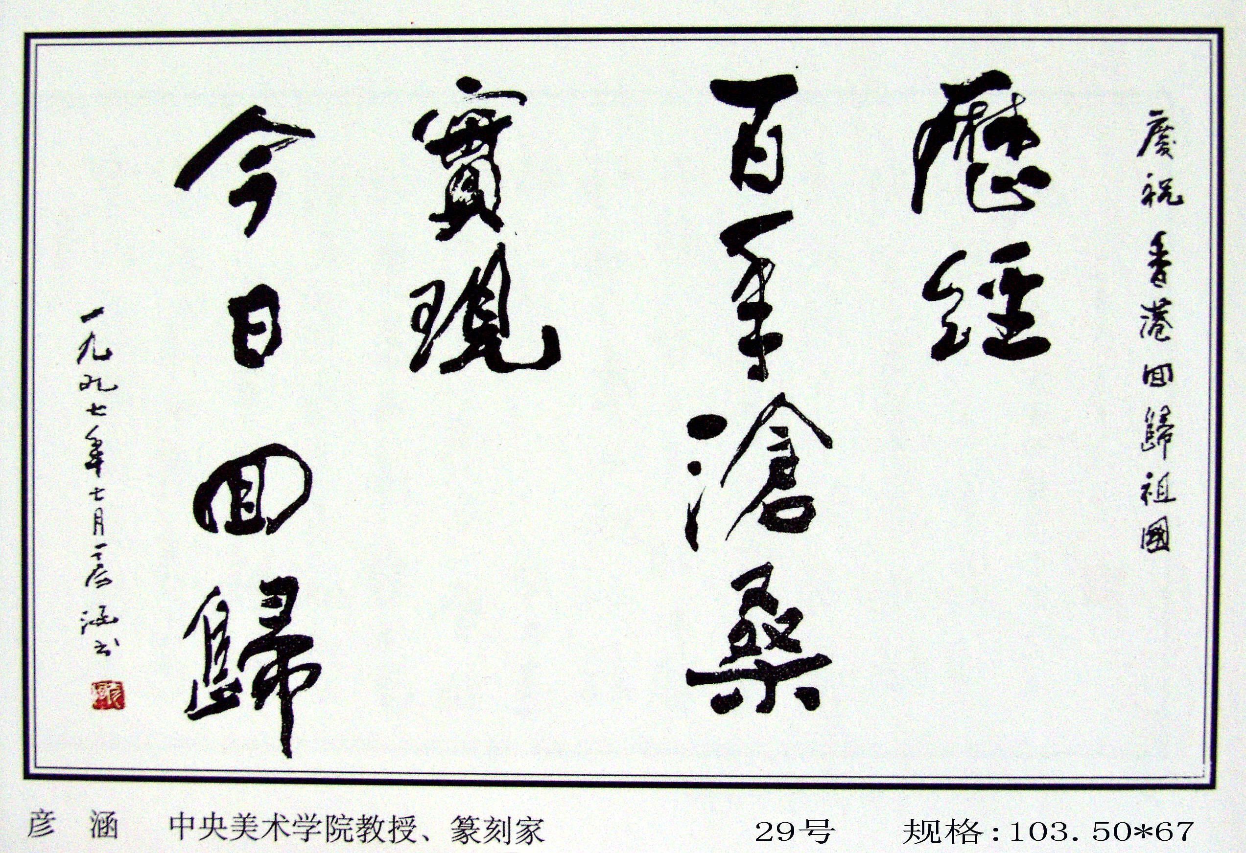 全國(guó)政協(xié)原副主席馬文瑞“為迎香港回歸百米書(shū)畫(huà)長(zhǎng)卷題字留念”