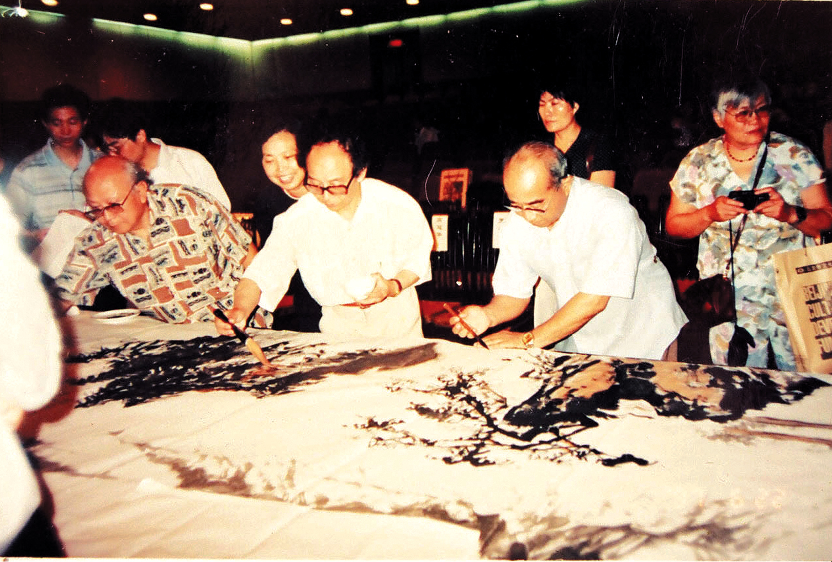 著名書畫家陳大章、中央美術(shù)學(xué)院教授、中央文史研究館館員、著名書法家黃均等為“迎香港回歸-首都百名老人書畫百米長卷”揮毫潑墨