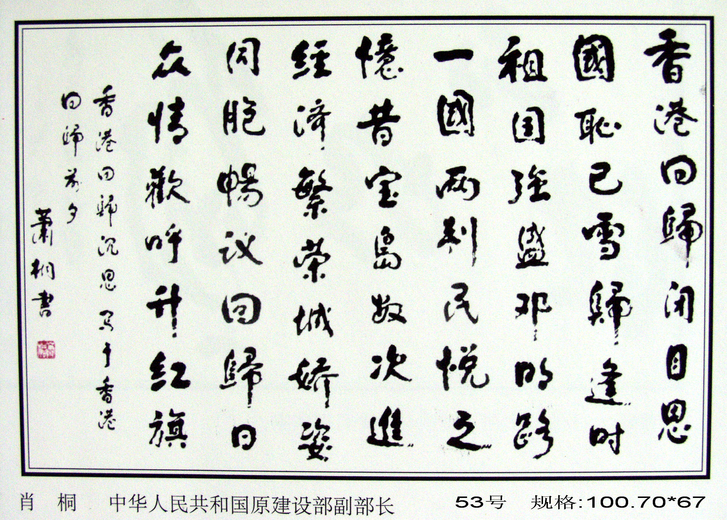 全國政協(xié)原副主席馬文瑞“為迎香港回歸百米書畫長卷題字留念”