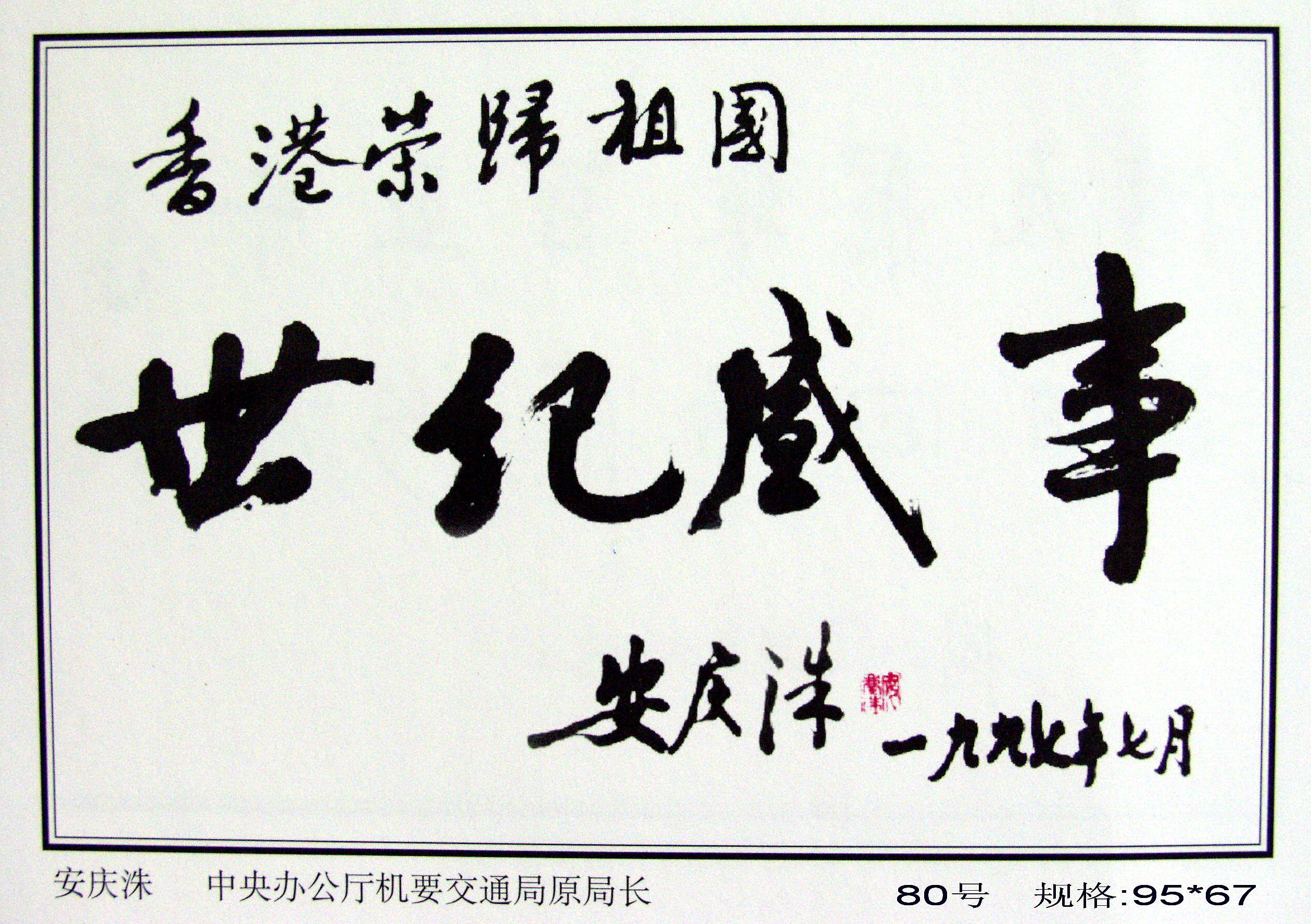 全國政協(xié)原副主席馬文瑞“為迎香港回歸百米書畫長卷題字留念”