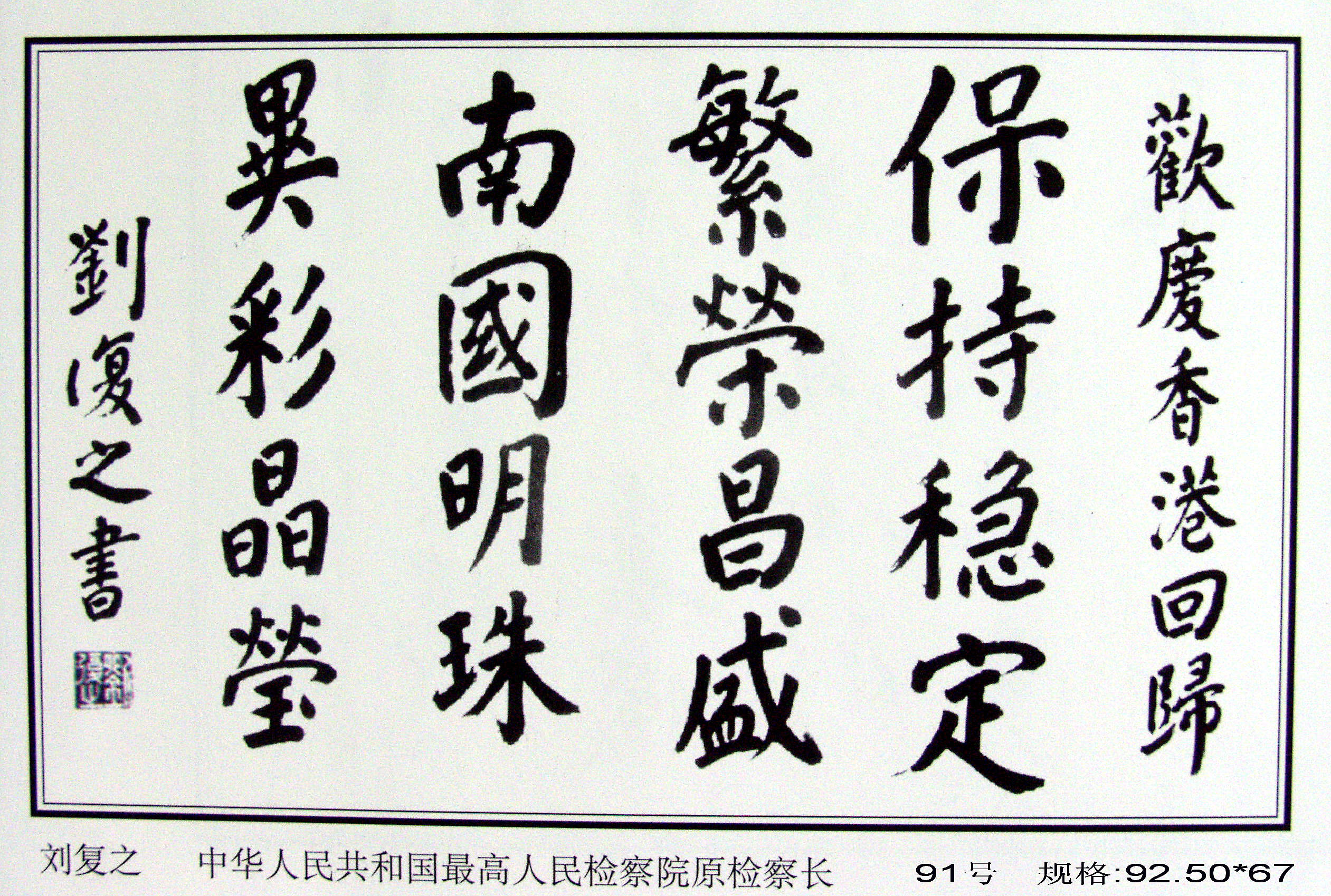 全國(guó)政協(xié)原副主席馬文瑞“為迎香港回歸百米書畫長(zhǎng)卷題字留念”