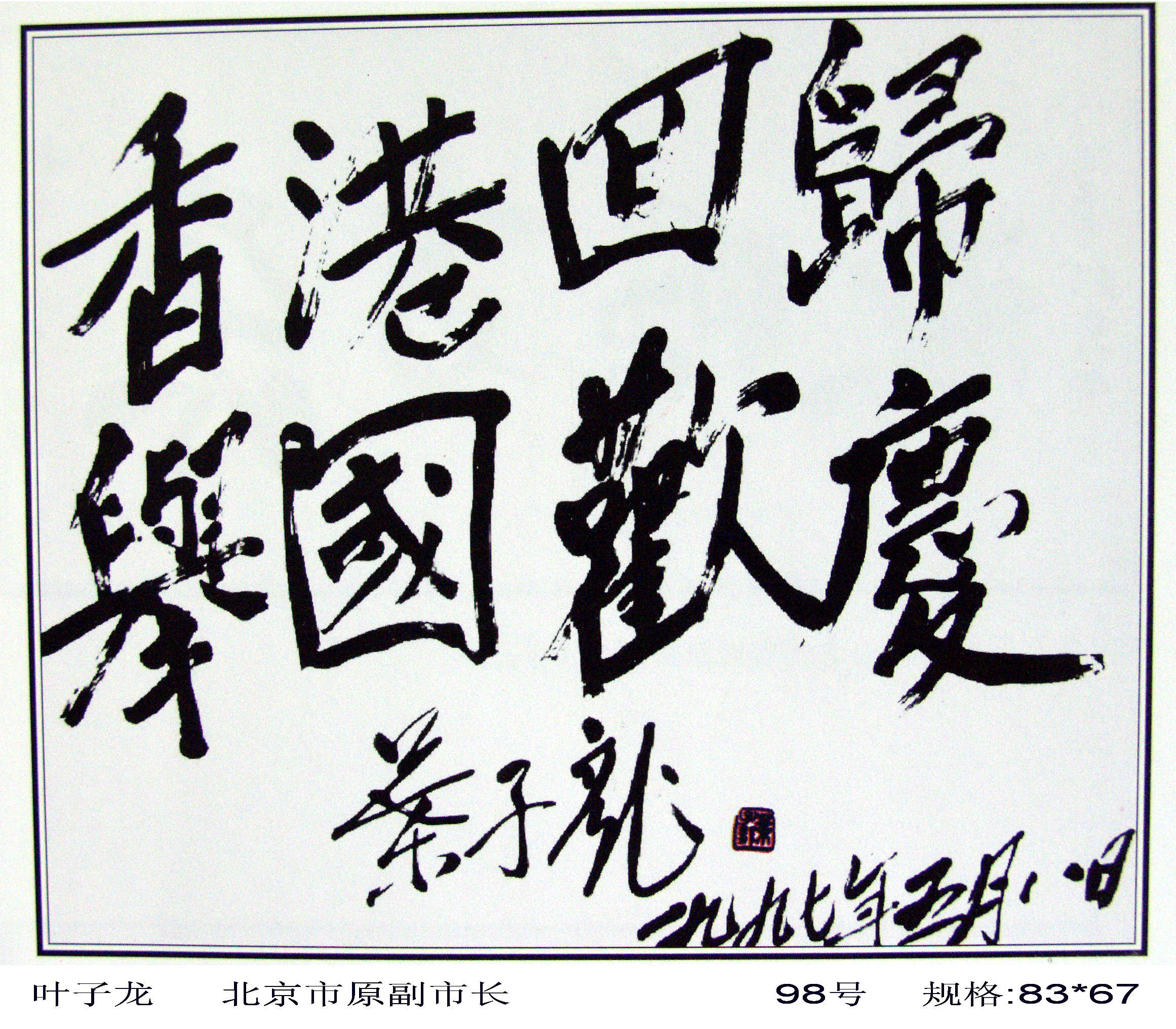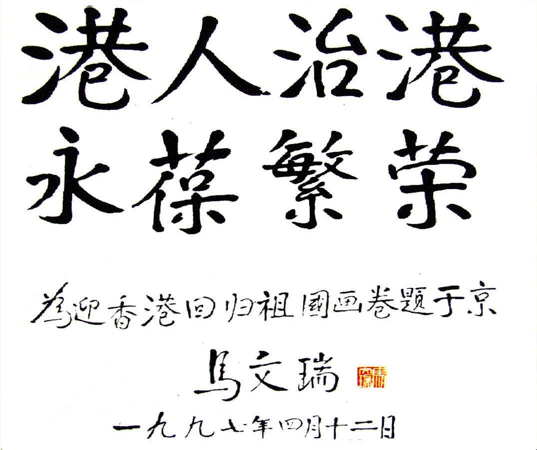 全國(guó)政協(xié)原副主席馬文瑞“為迎香港回歸百米書畫長(zhǎng)卷題字留念”