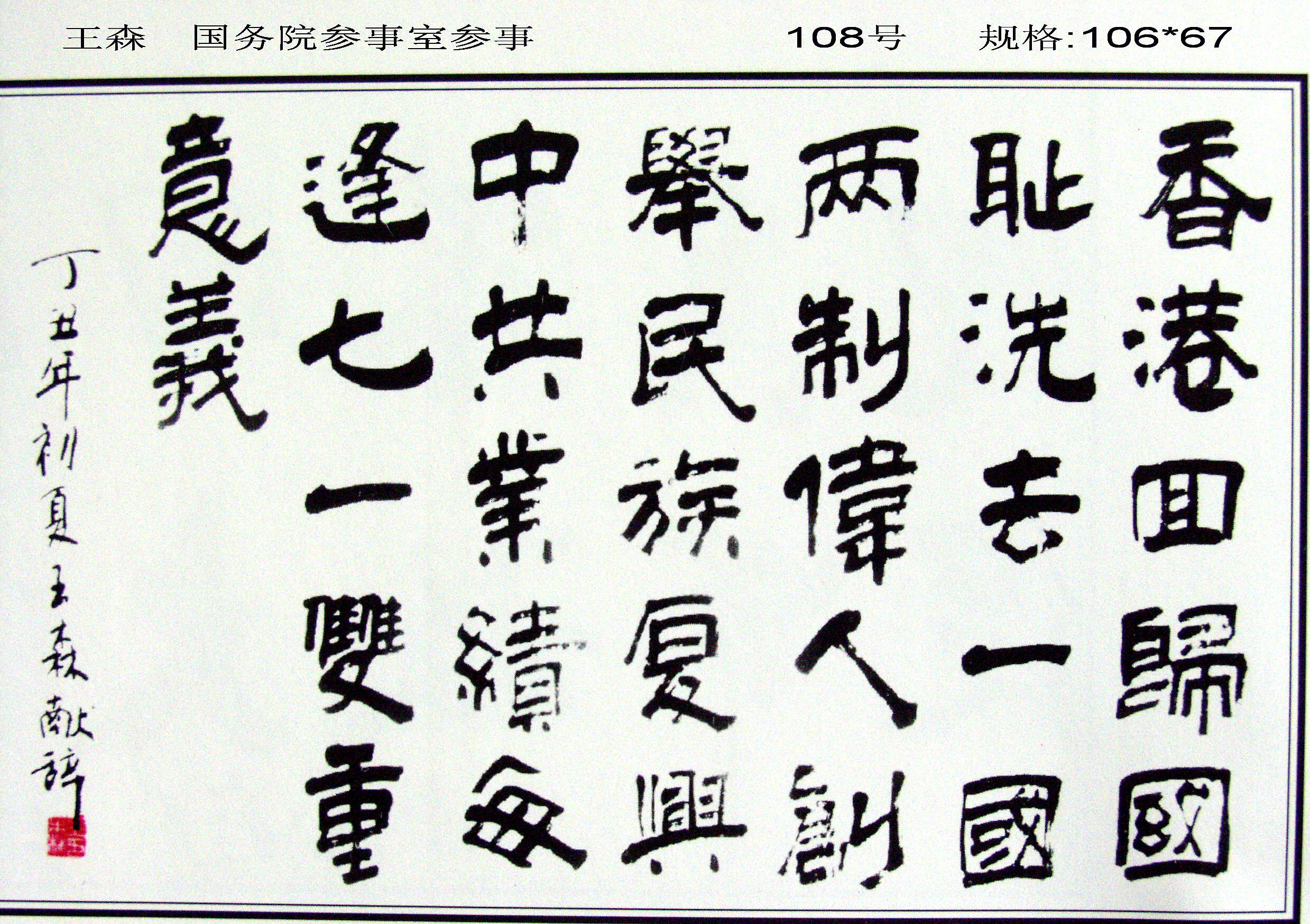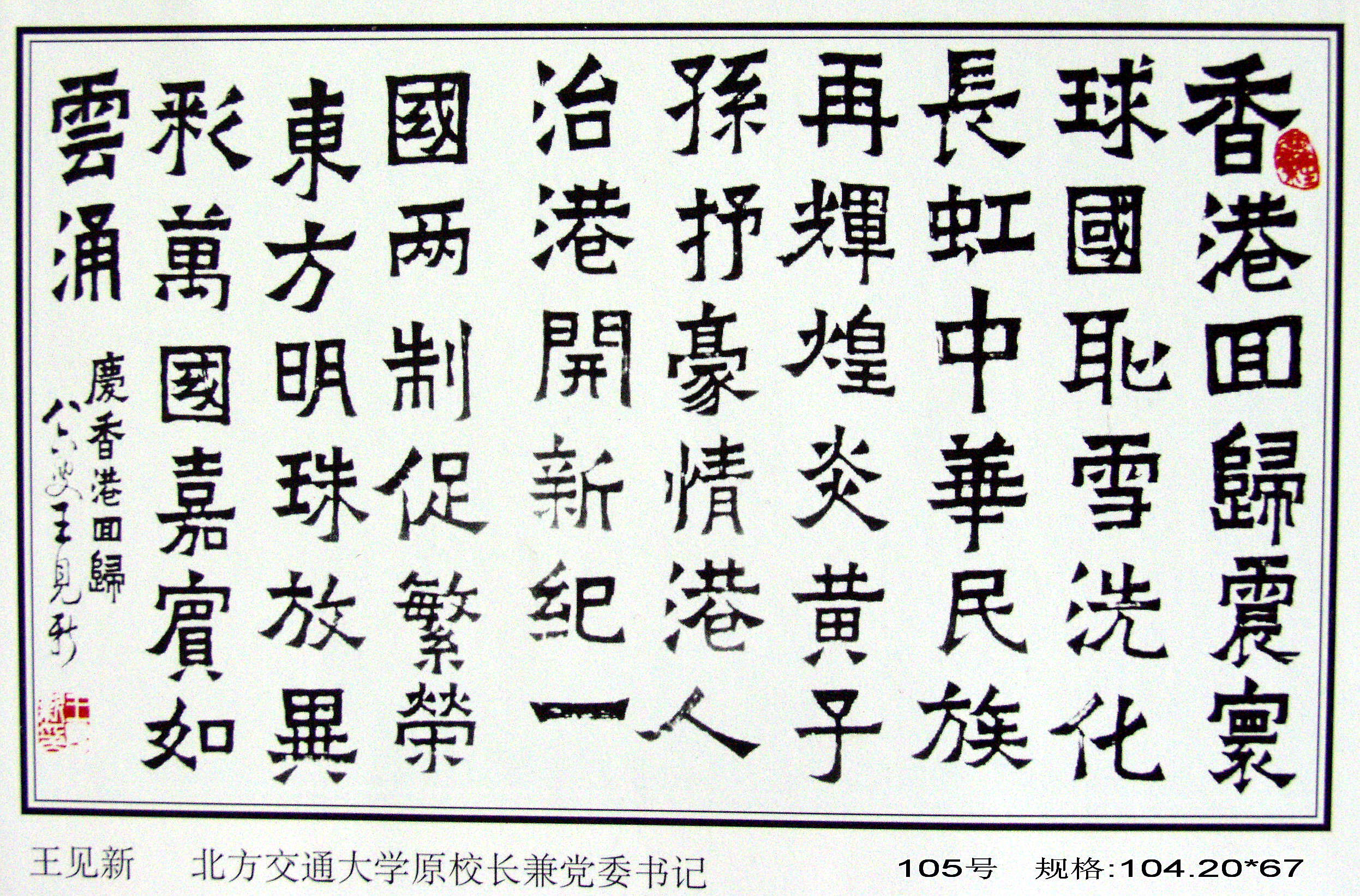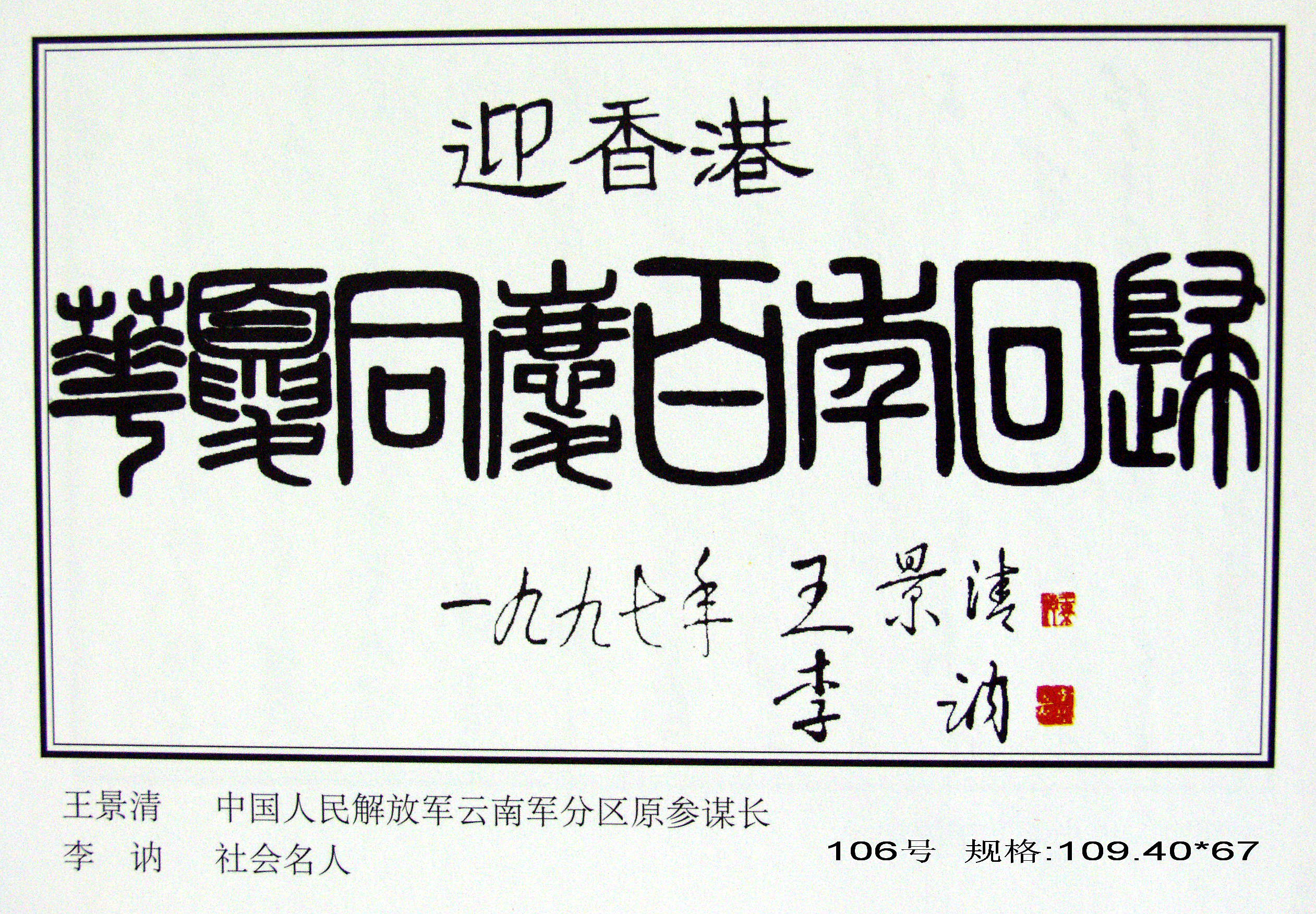 為了留住這一歷史性時刻,也為了見證香港這百年滄桑的歷史,原國務(wù)院老干部局、中國世界民族文化交流促進(jìn)會藝術(shù)委員會、中國政策科學(xué)研究會老年政策委員會、北京大運河翰林文化開發(fā)中心共同邀請四百多位老領(lǐng)導(dǎo)、老將軍、老書畫藝術(shù)家、社會知名人士及優(yōu)秀中青年畫家,揮毫潑墨,創(chuàng)作了《迎香港回歸首都百名老人書畫百米長卷》,征集了四百多幅精美作品。同時,精選不同藝術(shù)特色和風(fēng)格的作品,裝裱成卷,以珍藏這筆巨大的精神文化財富。