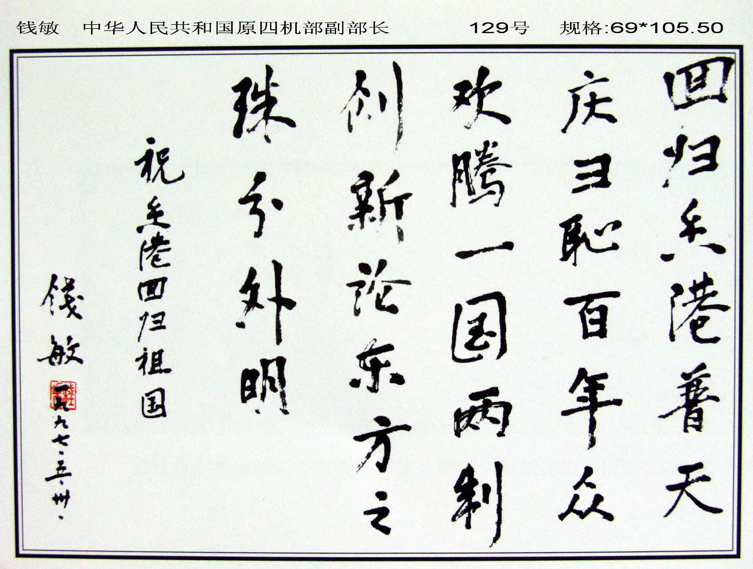 全國政協(xié)原副主席馬文瑞“為迎香港回歸百米書畫長卷題字留念”