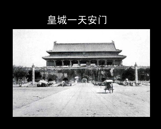 京城的中央矗立著一座巍峨壯麗的古代闕樓——天安門。它是皇城的正門。