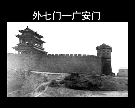 明時(shí)建廣寧門,這里為廣寧門大街,東段為菜市口大街。廣安門是北京外城西垣唯一的城門,也是外城唯一向西開的城門。