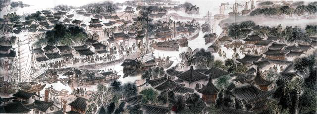 全卷長210米,高0.83米,用中國畫獨特的散點透視手法與現(xiàn)代水墨技法融為一體,完美地將漕運鼎盛時期京杭大運河的風貌躍然紙上,展現(xiàn)世人。