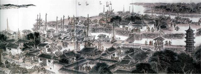 圖為《古運回望圖》所繪揚州名勝古跡——瓜洲古渡