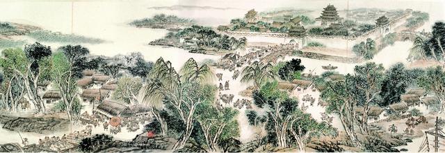 全卷通高83公分,長210公尺,以明代航運鼎盛時期為背景,以運河為主線,自通州始至余杭終,經(jīng)京津冀魯蘇浙,四省二市,五大水系,百余城鎮(zhèn),浩浩蕩蕩,三千余里,一氣貫通,氣勢恢宏。畫面兼工帶寫,五色丹青,師法自然。人物景色,勾勒細膩,疏密得體。山水迤麗,柳岸花明,漕艘櫛比,往來如梭,閘壩碼頭,廩粟云屯,城鎮(zhèn)市井,百態(tài)人生,縱觀全卷,三千里漕運風情盡收眼底,五千年華夏文明彰顯其中。正可謂,漕運舟楫之盛,可抵長城之雄!