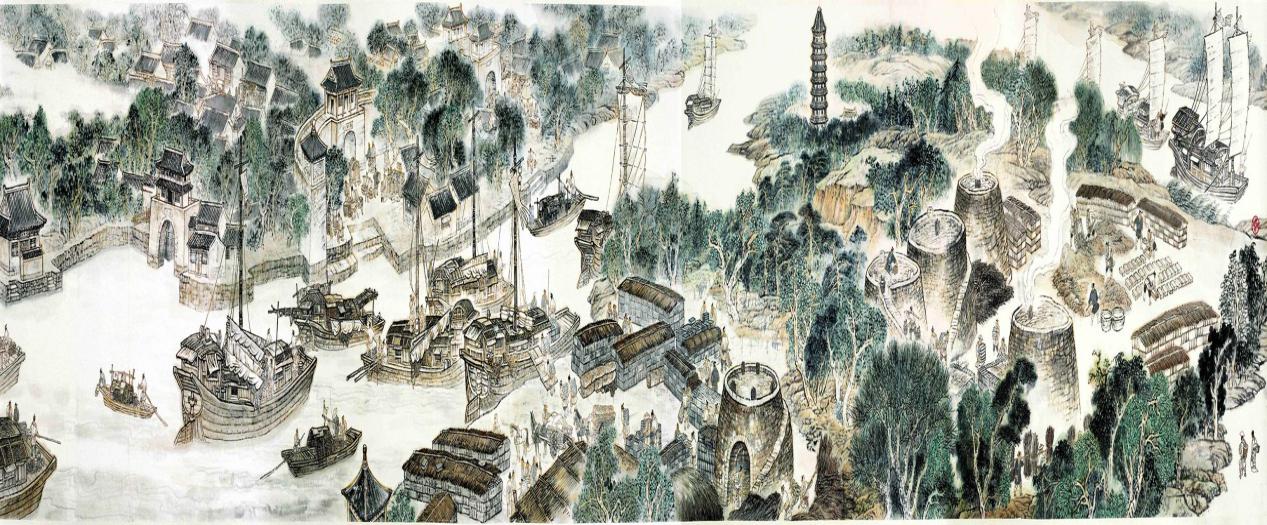 《古運回望圖》之創(chuàng)作,旨在弘揚自強不息之民族精神,漕運盛景之再現(xiàn),貴在推崇厚德載物之中華氣量。