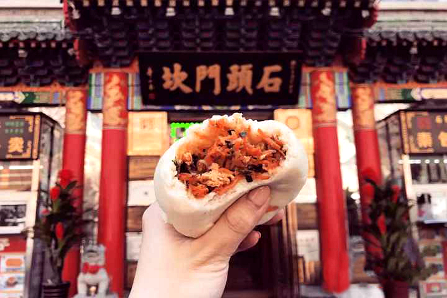 石頭門(mén)坎素包已有百余年的歷史。其以綠豆芽菜、粉皮、香干等調(diào)拌成餡,用精面粉作皮,蒸熟而成。石頭門(mén)坎素包具有濃郁的地方風(fēng)味,是天津傳統(tǒng)風(fēng)味小吃。晚清時(shí)代,由于天津地處華北五大河流匯合點(diǎn),瀕臨渤海灣,自古以來(lái)航運(yùn)發(fā)達(dá)。當(dāng)時(shí)這一地區(qū)居住著眾多以捕魚(yú)為生的漁民。這些漁民和他們的家屬為了祈求海神保佑,常去天后宮敬香請(qǐng)?jiān),他們根?jù)佛教不殺生食素齋的佛門(mén)戒律,吃素齋行善事,于是就在天津東北角附近的海河邊“天后宮”宮南大街對(duì)面的一條小巷內(nèi)開(kāi)業(yè)了一家最早經(jīng)營(yíng)天津素食的餐館“真素園佛素包”。石頭門(mén)坎素包始于清代,由天津真素園經(jīng)營(yíng),向以選料多樣,清素不膩,制作講究,深為廣大群眾所喜愛(ài)。該店臨近海河,為防洪水,店外設(shè)矮堤,形似門(mén)坎,市人便將此包稱(chēng)為“石頭門(mén)坎素包”。