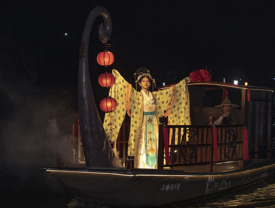 該圖以大運河鼎盛時期的明代中興時期為歷史背景,以反映大運河上下督運盛況為主線,以精心刻畫沿線著名人文景觀、民風民俗為描寫對象。全卷長210米,寬0.83米,以中國畫兼工帶寫的方法創(chuàng)作,淺絳小青綠,從北京皇城、通州八里橋、燃燈塔及張家灣碼頭開始,經(jīng)天津、河北、山東、江蘇、浙江至余杭結(jié)束。全卷以大量翔實的歷史資料為依據(jù),從政治、經(jīng)濟、文化、軍事、市井、民風、民俗、建筑、商業(yè)、貿(mào)易、環(huán)境、風景名勝等多側(cè)面描繪六百年前祖國大動脈的繁榮景象和明代資本主義萌芽時期百業(yè)興旺、萬國來朝的盛況。以生動的歷史故事、民間傳說為題材,著力刻畫當時南北漕運的全過程,構(gòu)筑典型場景及人間百態(tài),突出當時的船文化、制造業(yè)、工商業(yè)、服飾特色及南北貿(mào)易,描繪運河兩岸的壯麗風光。整個畫面設(shè)25個段落,共涉及風景名勝100余處,南北貫通,起伏跌宕,風情各異,美景連珠。各類船只千余艘,官、宦、士、農(nóng)、工、商、纖夫、船夫、搬運工,三教九流、五行八作,各類人物數(shù)萬人。長卷情景交融、天人合一、自然成趣、藝術(shù)精湛,堪稱一件“一條運河貫穿南北,半壁河山盡收畫卷”的長篇巨作。
