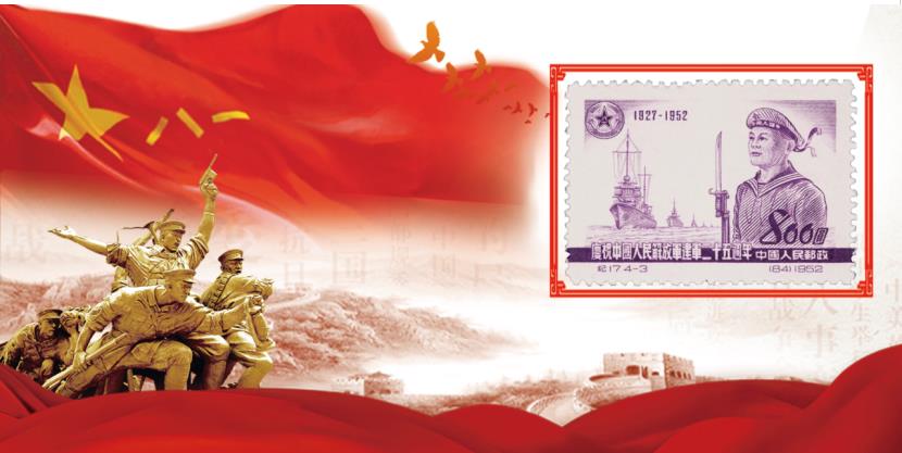 1952年8月1日,中華人民共和國郵電部發(fā)行一套由孫傳哲先生設(shè)計(jì)的《中國人民解放軍建軍二十五周年》紀(jì)念郵票,全套4枚。第1枚描繪了海、陸、空三軍戰(zhàn)士的形象,第2、3、4枚分別描繪了全副武裝的陸軍、海軍、空軍戰(zhàn)士形象。