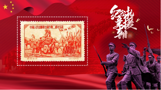 1952年11月15日,為了紀(jì)念中國(guó)人民志愿軍赴朝作戰(zhàn)2周年,中華人民共和國(guó)郵電部發(fā)行一套《中國(guó)人民志愿軍出國(guó)作戰(zhàn)二周年紀(jì)念》紀(jì)念郵票,全套4枚。