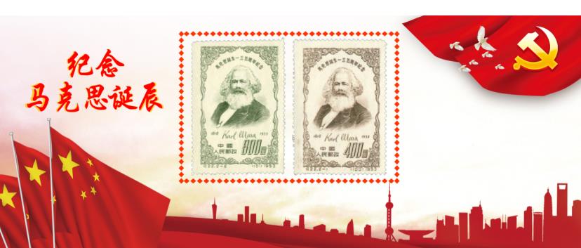 1953年5月20日,為了紀(jì)念馬克思誕生135周年,中華人民共和國(guó)郵電部發(fā)行一套《馬克思誕生一三五周年紀(jì)念》紀(jì)念郵票,全套2枚。