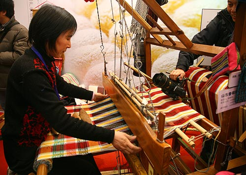 。▊鹘y(tǒng)織布機(jī)織布場景)