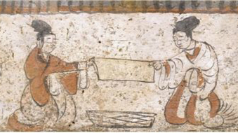 “十畝地八畝寬,里面坐個女兒官,千根箏,萬根線,梭子手中來回穿。腳一踏,手一扳,十指蓮花都動彈?棾刹,做衣衫,娃娃穿了擋風(fēng)寒!,這首典型的豫西兒歌所表現(xiàn)的是女人們的織布過程,織女為將軍,指揮手下一梭萬線,也體現(xiàn)了中國古代對女性勞作的尊重。