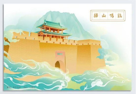 (自主開發(fā)的雞鳴驛特色明信片,由國家郵政郵政集團公司郵票印制局印刷,具有紀念意義,可加蓋紀念戳及粘貼1995年8月發(fā)行的《古代驛站·雞鳴山驛》紀念郵票,郵寄遠方親人好友,傳達問候)