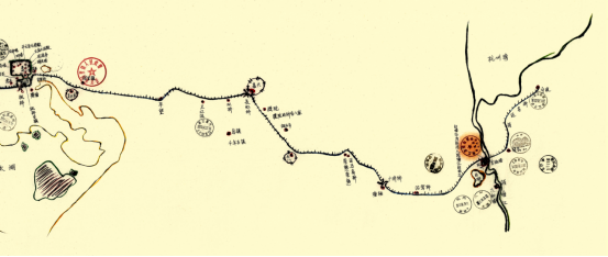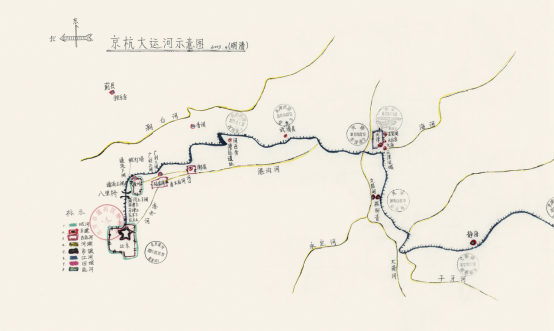 2011年運(yùn)河之旅已永遠(yuǎn)地凝固為歷史,出發(fā)前繪制的騎游路線示意圖——《重游運(yùn)河圖》上六十六枚沿途所經(jīng)地區(qū)的印章,記錄了京杭騎游之旅每一個(gè)難忘時(shí)刻。