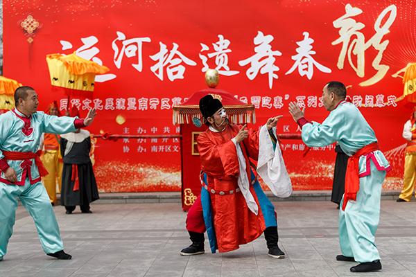 今天是農(nóng)歷二月初二,也是傳統(tǒng)民俗中的“龍?zhí)ь^”。除了剃頭、吃燜子,傳統(tǒng)的民俗活動(dòng)更是必不可少。為弘揚(yáng)運(yùn)河傳統(tǒng)文化,進(jìn)一步做強(qiáng)做大“老城津韻”南開區(qū)民俗文化品牌,增強(qiáng)文化自信,迎接建黨100周年,今天上午,“運(yùn)河拾遺舞春龍”民俗文化展演暨南開區(qū)第三十一屆“飛雪迎春”閉幕式在南開文化中心廣場(chǎng)舉行;顒(dòng)由南開區(qū)委、區(qū)政府主辦,區(qū)文化和旅游局承辦,區(qū)文化館、圖書館、文化遺產(chǎn)和旅游服務(wù)中心協(xié)辦。