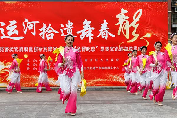 活動(dòng)中,來自天津聾人花會(huì)、南開民間藝術(shù)團(tuán)、水上公園街水之韻腰鼓隊(duì)、南門西樂勝高蹺老會(huì)、南開區(qū)文化館舞蹈團(tuán)、華苑街瑩華里秧歌隊(duì)等團(tuán)體分別帶來了舞龍、杠箱、中幡、腰鼓、新秧歌、傳統(tǒng)秧歌等豐富多彩的民俗文化節(jié)目,給市民帶來傳統(tǒng)藝術(shù)的享受。同時(shí),南開區(qū)區(qū)圖書館在現(xiàn)場(chǎng)舉辦“您讀書,我買單”的新書借閱活動(dòng),豐富市民群眾的文化生活。(南開區(qū)融媒體中心)