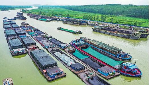 7月20日,京杭運河棗莊段防汛一級響應(yīng)解除,恢復(fù)通航,上百艘船舶在京杭運河臺兒莊段水域列隊等待過閘。