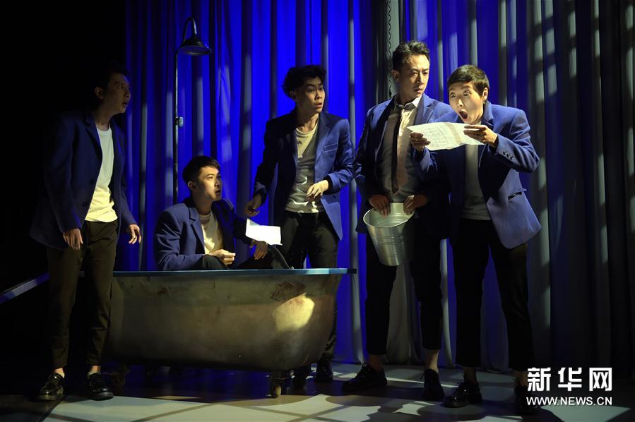 9月29日,演員在話劇《我是余歡水》中表演。當(dāng)日,由繁星戲劇村和百花文藝出版社共同出品的話劇《我是余歡水》在北京繁星戲劇村首演。該劇講述了一個小人物余歡水體檢中發(fā)現(xiàn)自己身患絕癥,隨后的生活和命運發(fā)生了一連串改變的故事。新華社記者 魯鵬 攝