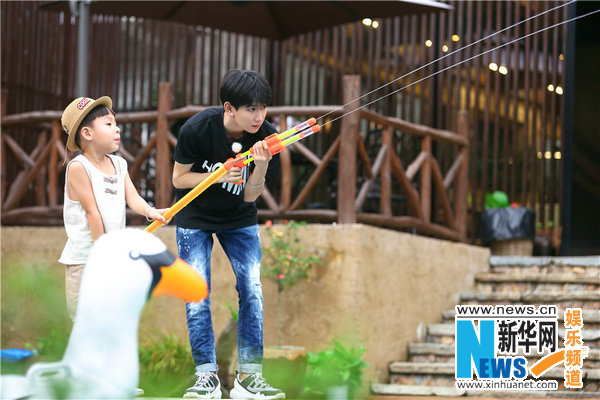 除了為客人們煎蛋,王源還貼心照顧小朋友。晚飯后,主人們與素人旅客一起齊聚游泳池游泳,其中一家四口中的小男孩也在水中嬉戲,他看見(jiàn)王源更是抑制不住喜歡之情,直呼:“王源哥哥,你帶著我游。”王源也欣然應(yīng)允,拉著小朋友的游泳圈一直往前游,讓這位小朋友分外開(kāi)心。