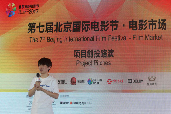 導(dǎo)演徐翔云在第七屆北京國際電影節(jié)電影市場項(xiàng)目創(chuàng)投路演現(xiàn)場