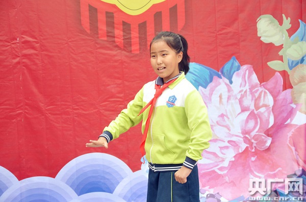 圖為《我是中國人》參演同學(xué)向記者展示《變臉》表演 央廣網(wǎng)記者王子衿攝