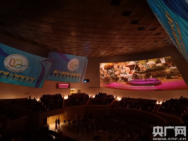 圖為開幕式演出現(xiàn)場播放藝術(shù)節(jié)宣傳片 央廣網(wǎng)記者王子衿攝