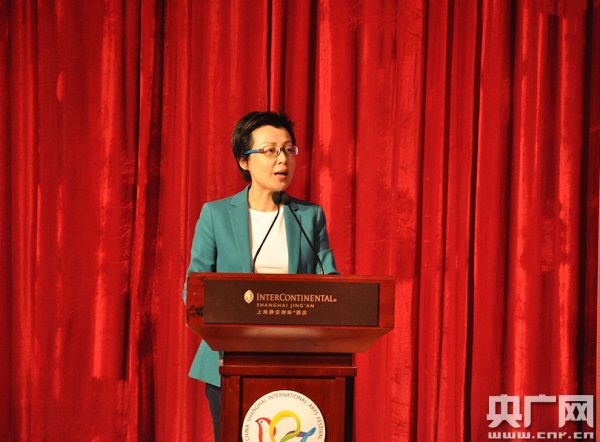 圖為上海國際藝術(shù)節(jié)中心總裁王雋介紹合作情況 央廣網(wǎng)記者王子衿攝