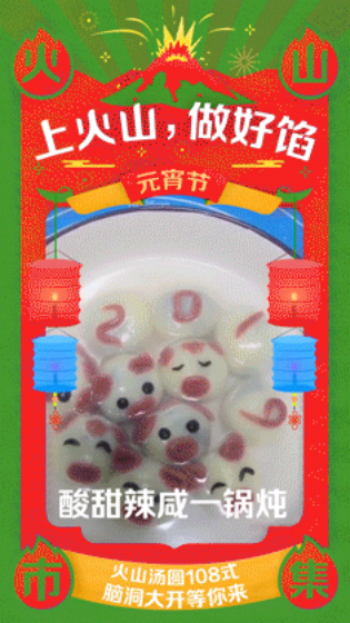 如果你也有與眾不同的做元宵新姿勢,也可以去火山小視頻,進入火山市集元宵節(jié)專區(qū),分享你的創(chuàng)元宵圓視頻,一起“上火山做好餡”!