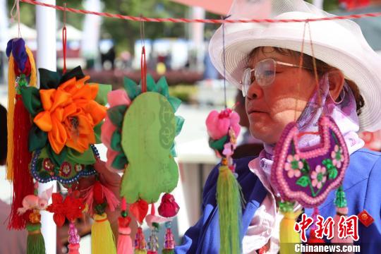 圖為非物質(zhì)文化遺產(chǎn)文創(chuàng)產(chǎn)品展覽上的青海香包展示!×_云鵬 攝