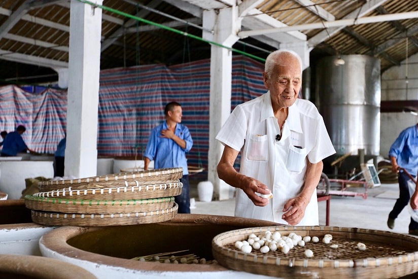 王阿牛是第一批國(guó)家級(jí)非物質(zhì)文化遺產(chǎn)項(xiàng)目紹興黃酒釀制技藝代表性傳承人,出生在紹興東浦賞祊村的釀酒世家,從少年時(shí)期就奠定了他的酒香人生。17歲跟父親進(jìn)酒作坊后,王阿牛繼承了父輩的釀酒技藝。他對(duì)紹興黃酒的釀制發(fā)酵技術(shù)刻苦鉆研,反復(fù)實(shí)踐,獲得了嫻熟完善的紹興酒生產(chǎn)技術(shù),成為全國(guó)黃酒行業(yè)出類拔萃的行家。1979年,他被聘為輕工業(yè)部評(píng)酒委員,1982年,他再次被聘為國(guó)家級(jí)黃酒評(píng)委。王阿牛積累了大量的一手資料,于1959年編寫了《紹興酒操作規(guī)程》,退休后又寫了30萬(wàn)字的《紹興酒釀造生產(chǎn)技術(shù)》,從而使紹興酒由祖祖輩輩口耳相傳的傳統(tǒng)技藝變成了有文字規(guī)定的系統(tǒng)的操作規(guī)程。為了紹興黃酒釀制技藝后繼有人,王阿牛多年來(lái)在各種黃酒培訓(xùn)班上傳授技藝,培養(yǎng)技術(shù)人才。從傳承再到傳授,王阿牛用盡全力讓黃酒釀制技藝得以發(fā)展,讓黃酒繼續(xù)飄香。