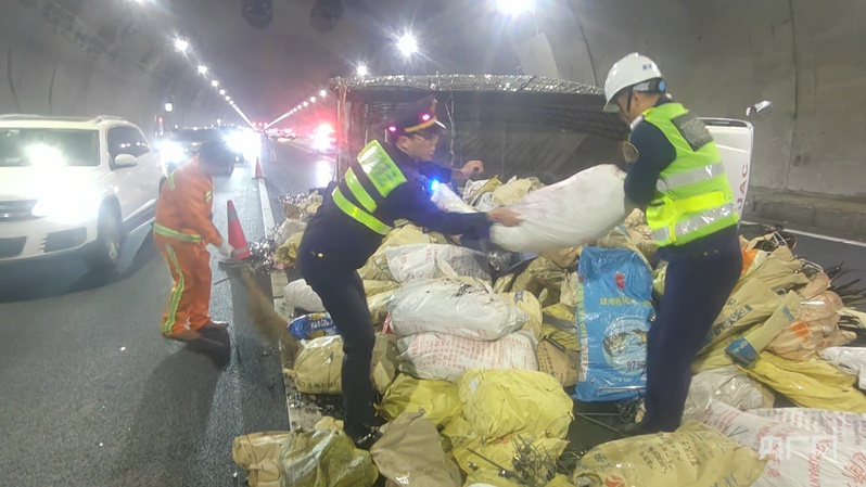 近日,廈蓉高速B道天成山隧道內(nèi)發(fā)生一起貨車失控側(cè)翻交通事故,隨車人員受傷,車上50余袋廢鐵件散落路面,接警后,漳州高速相關(guān)部門聯(lián)動救援,及時恢復(fù)道路暢通。