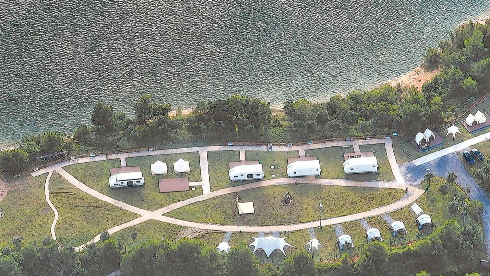 1日,清流縣沙蕪鄉(xiāng)九龍湖湖畔露營驛站開業(yè),驛站臨湖而建,吸引游客前來游玩。