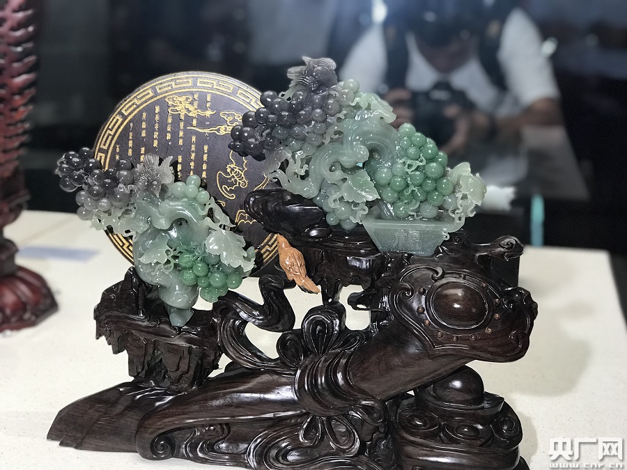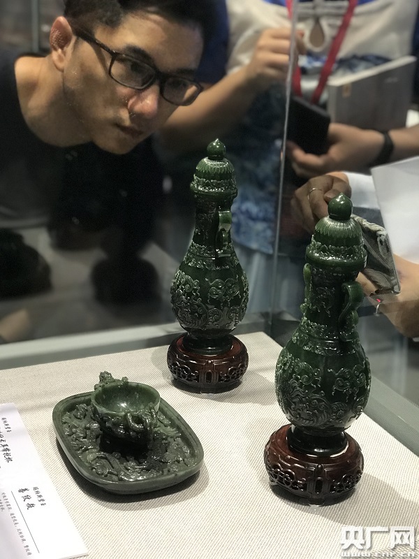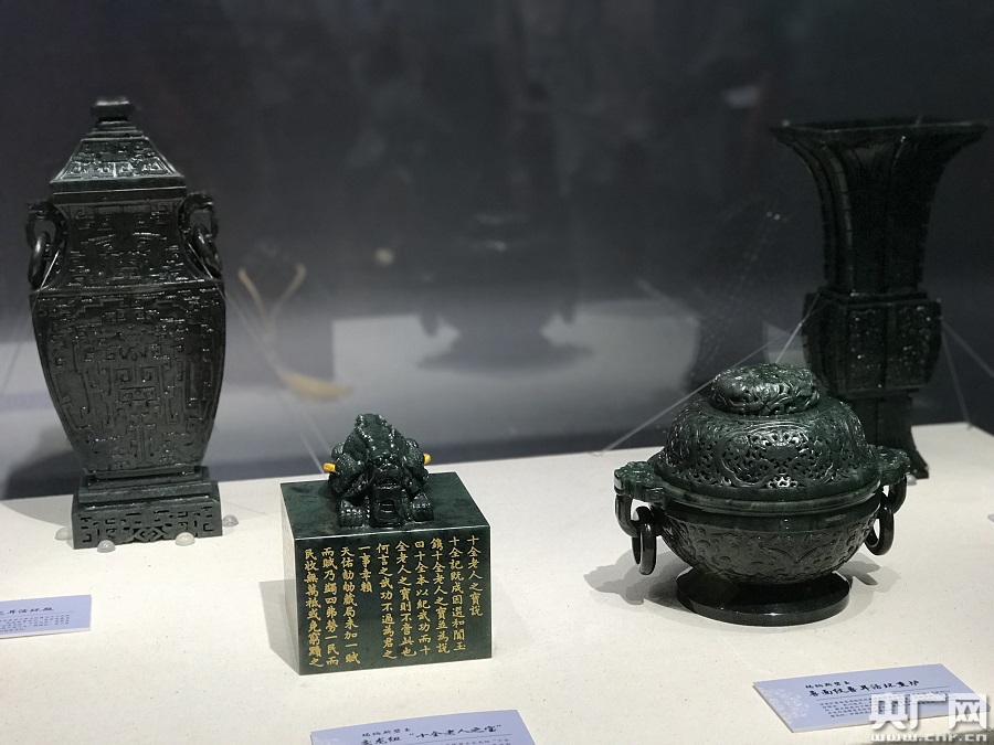 根據(jù)故宮博物院藏品1:1復(fù)制的瑪納斯碧玉展品(央廣網(wǎng)記者 陳庚攝)
