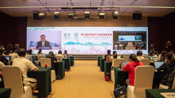 第44屆世界遺產(chǎn)大會(huì)新聞發(fā)布會(huì)福建福州主會(huì)場(chǎng)(央廣網(wǎng)發(fā) 林雙偉攝)