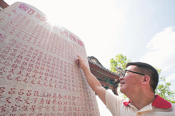 林榮宗指著安平橋水心亭邊的清代石碑告訴記者,這個捐銀修復(fù)石橋的人就是他的太爺爺。